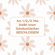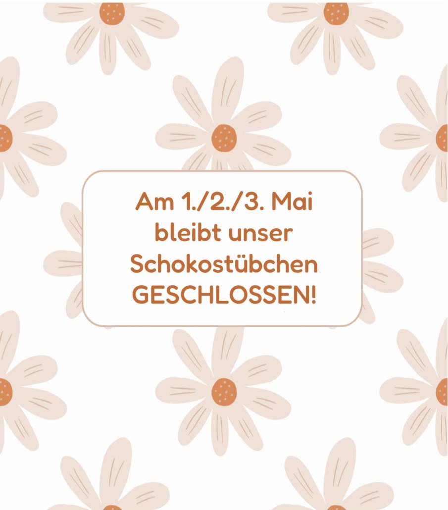 Unser Schokostübchen bleibt vom 1. bis 3. Mai geschlossen.